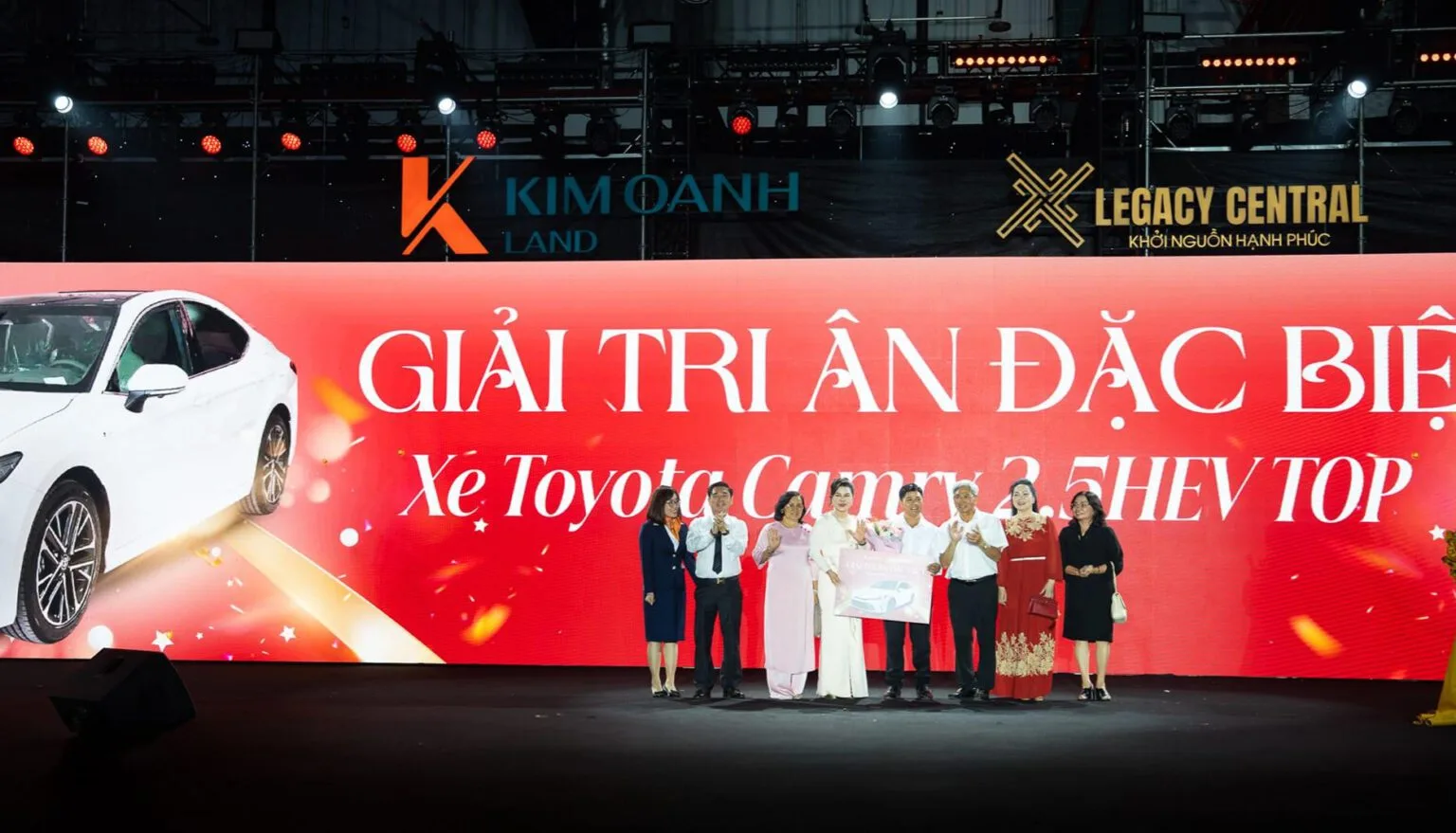 Sự kiện không chỉ để Kim Oanh Land tri ân sâu sắc những khách hàng đã lựa chọn an cư tại Legacy Central mà còn là dịp gắn kết cộng đồng cư dân và tri ân các đối tác cũng như đội ngũ nhân viên kinh doanh đã góp phần tạo nên thành công của dự án. Trong ảnh là Ban lãnh đạo Kim Oanh Group, Kim Oanh Land và 2.000 khách hàng tham dự sự kiện.