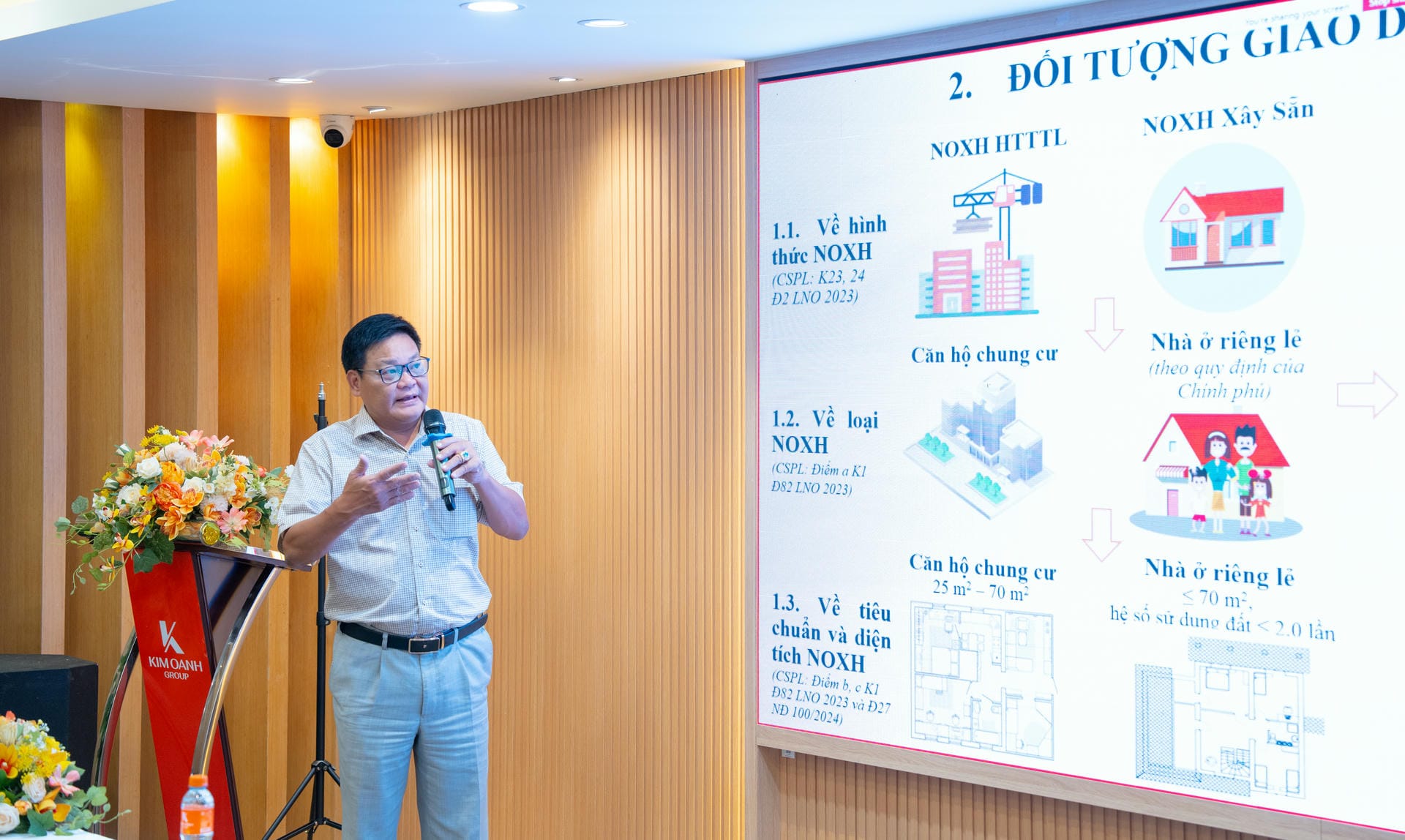 Luật nhà ở 2023 và Nghị định 100/2024 có hiệu lực từ ngày 1/8/2024, đã có nhiều quy định và tiêu chí mới đưa nhà ở xã hội (NOXH) đến gần hơn với người có nhu cầu thuê và mua. Buổi đào tạo lần này đã tập trung vào những thay đổi quan trọng của các Luật, Nghị định, cùng các vấn đề liên quan đến NOXH, cập nhật và nâng cao kiến thức pháp lý, quy trình giao dịch và chính sách hỗ trợ vay vốn – những yếu tố đóng vai trò then chốt trong việc giúp các chuyên viên có thể hỗ trợ khách hàng thuận lợi tiếp cận các sản phẩm NOXH của Kim Oanh Group trong thời gian tới.