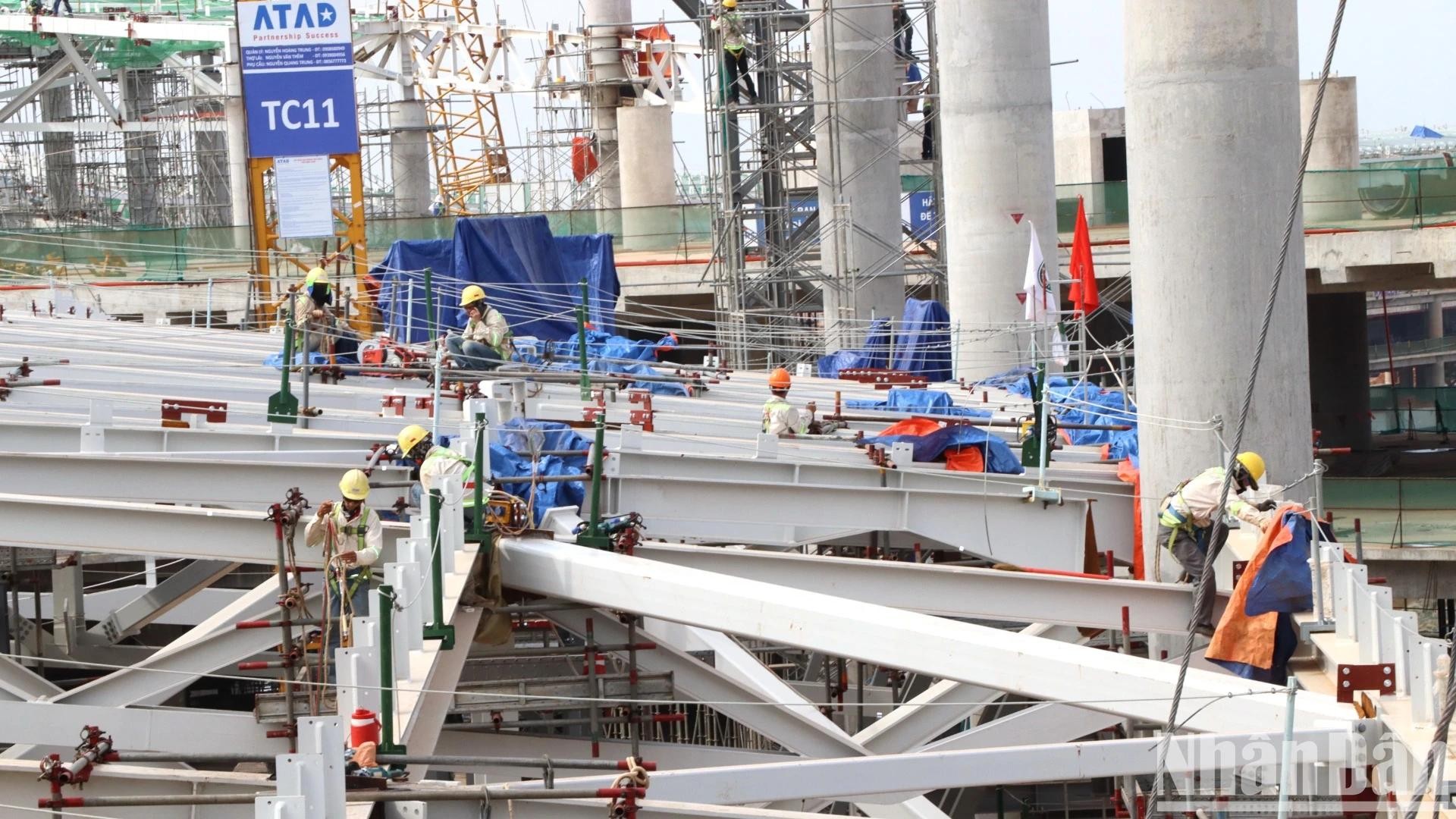 Đối với kết cấu thép nhà ga hành khách đã sản xuất kèo thép chính hoàn thành 100% khu cánh và 61% đối với khu trung tâm.