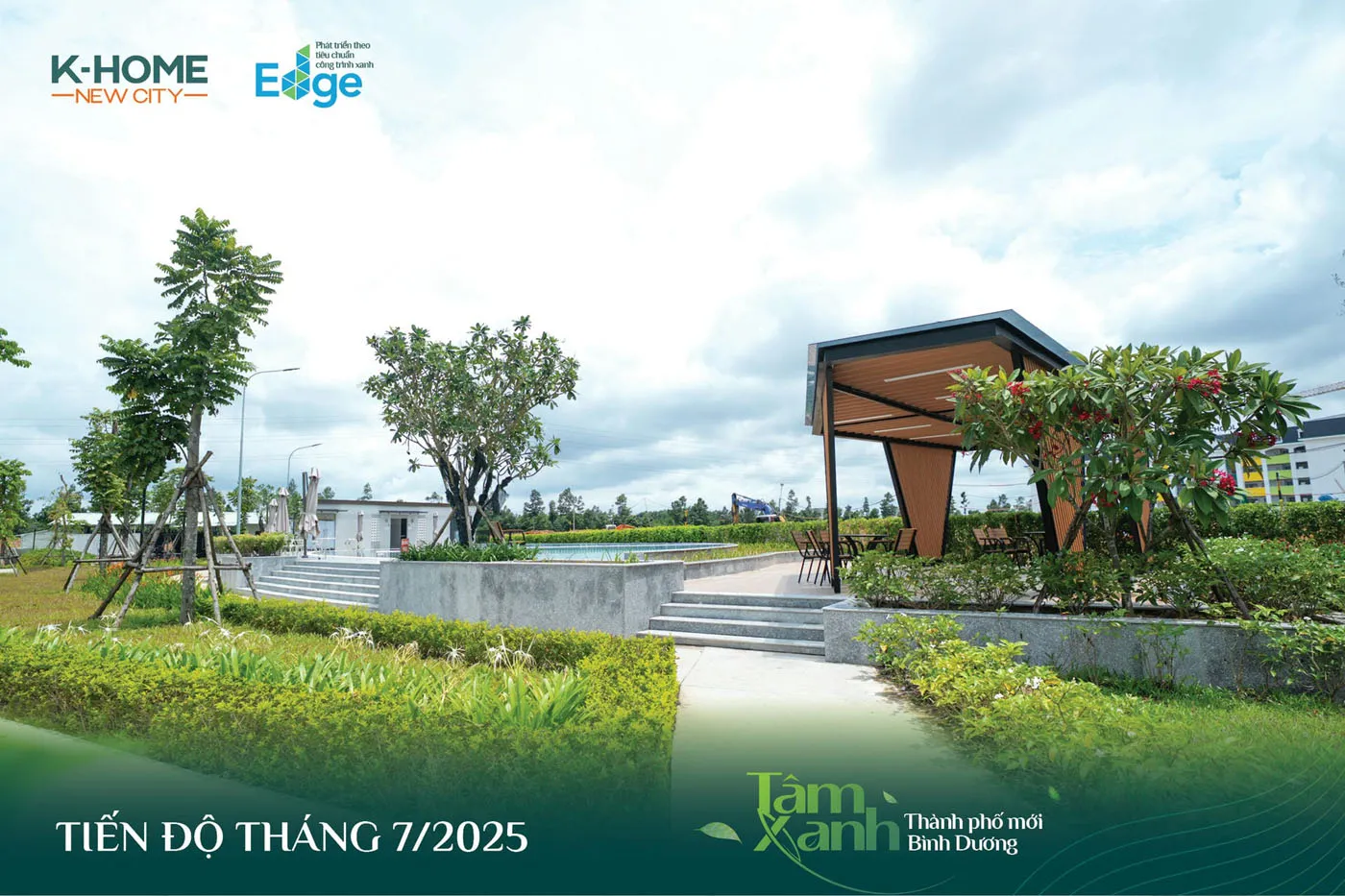 Tại trung tâm dự án, công viên Vườn Nhiệt Đới đã hình thành, với hồ bơi, chòi nghỉ, lối dạo bộ và các thảm thực vật được chăm chút kỹ lưỡng. Không gian này hứa hẹn trở thành điểm thư giãn lý tưởng cho cư dân tương lai.