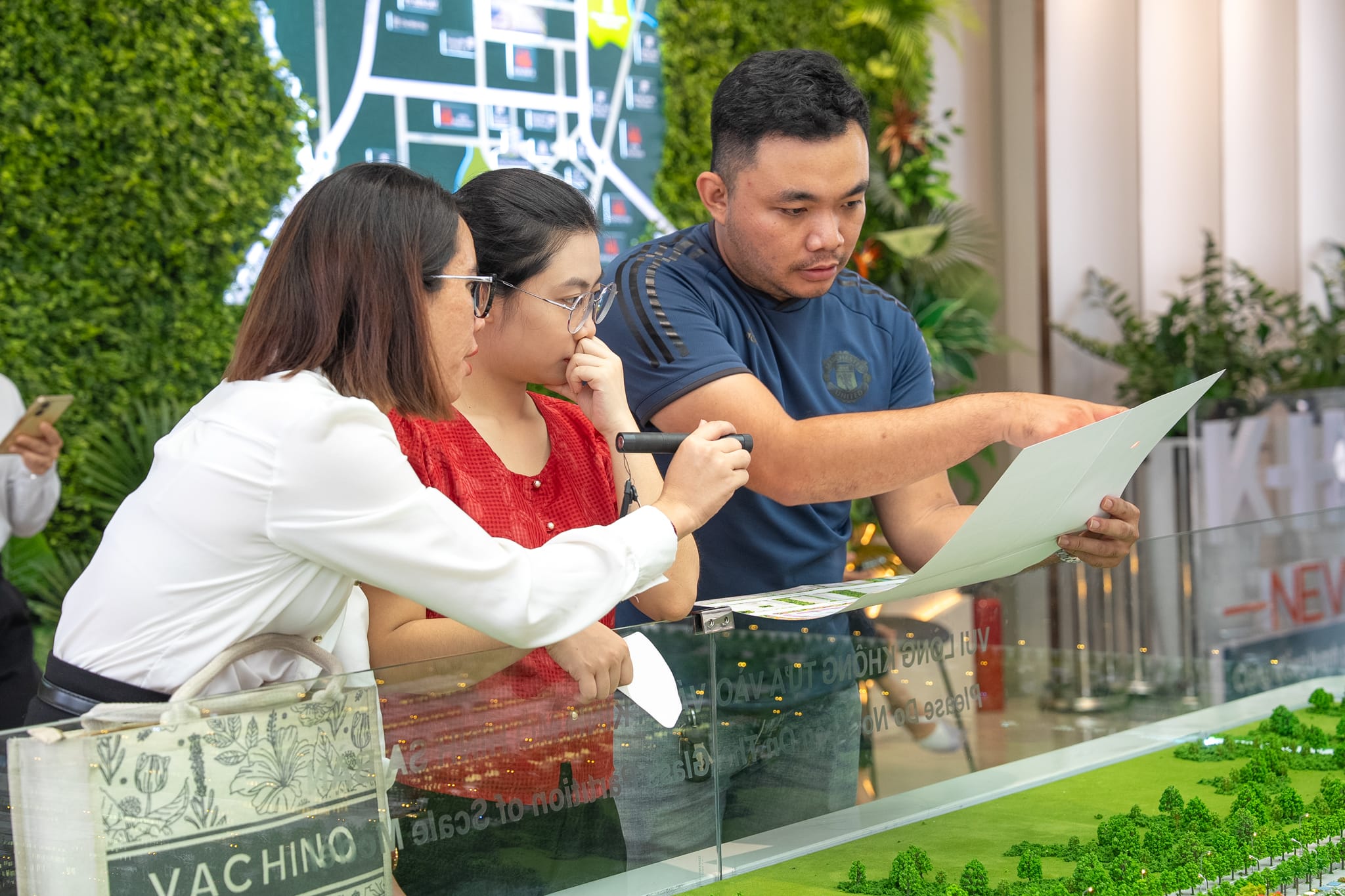 Các chuyên viên Kim Oanh Group hỗ trợ khách hàng tiếp cận chính sách ưu đãi hấp dẫn: chỉ với 436 triệu đồng/căn nhà phố và 155,4 triệu đồng/căn hộ, khách hàng đã có thể sở hữu tổ ấm được bàn giao hoàn thiện nội thất, sẵn sàng dọn vào ở. Phần còn lại được ngân hàng hỗ trợ vay tới 75% với lãi suất cố định 6,1%/năm trong 10 năm. Chính giá bán phù hợp khả năng chi trả và lộ trình thanh toán nhẹ nhàng này đã khiến nhiều khách hàng nhanh chóng đưa ra quyết định ngay tại sự kiện.