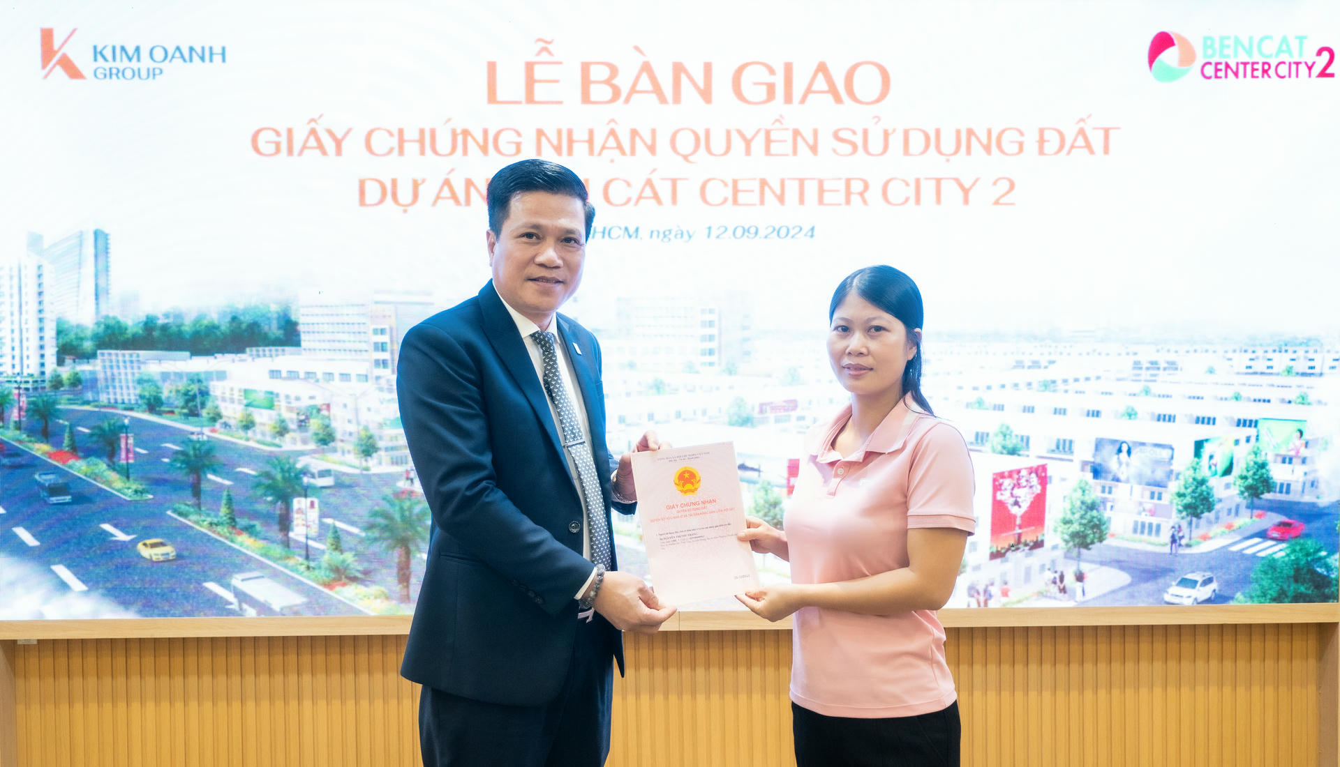 Trong suốt 16 năm hoạt động vừa qua, Kim Oanh Group luôn tâm niệm “Thành công của khách hàng, thành công của đối tác cũng là thành công của chính mình”. Vì thế, mọi cam kết với khách hàng đều được Tập đoàn cố gắng thực hiện. Minh chứng là trước Bến Cát Center City 2, Kim Oanh Group cũng đã trao Giấy chứng nhận Quyền sở hữu nhà và Giấy chứng nhận Quyền sử dụng đất tại nhiều dự án như Golden Future City, The EastGate, Golden Center City…