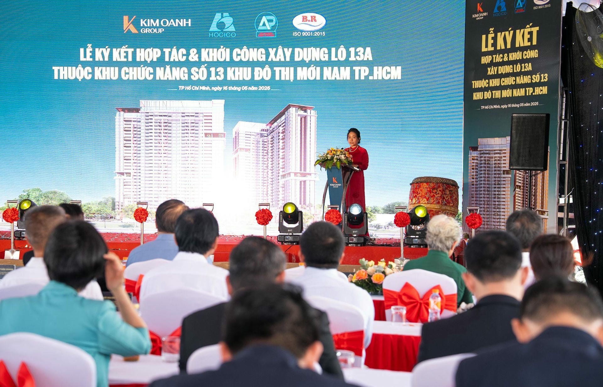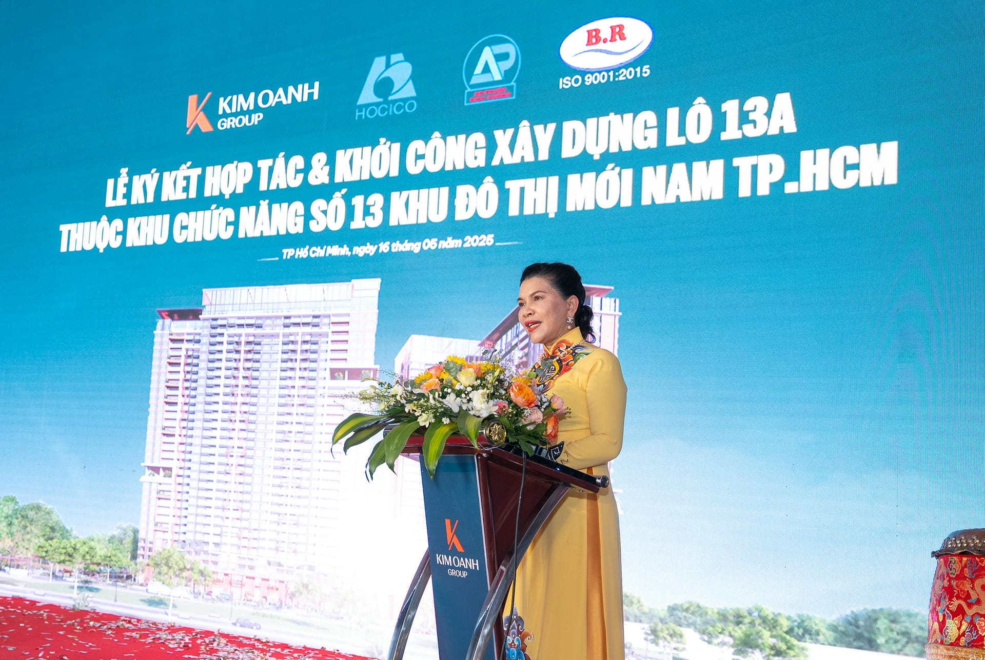 Phát biểu tại sự kiện, bà Đặng Thị Kim Oanh – Chủ tịch HĐQT, Tổng giám đốc Kim Oanh Group – phát biểu: “Việc hợp tác giữa Kim Oanh Group và Công ty cổ phần Xây dựng công trình và Đầu tư địa ốc Hồng Quang đánh dấu bước tiến quan trọng trong việc thúc đẩy phát triển đô thị tại Lô 13A thuộc khu chức năng số 13 khu đô thị mới Nam TP.HCM. Đồng thời, đây cũng là bước đi chiến lược của Kim Oanh Group trong việc tập trung phát triển các dự án nhà ở chất lượng, phù hợp với nhu cầu ở thực và khả năng tài chính của người dân TP.HCM nói riêng và khu vực phía Nam nói chung”.