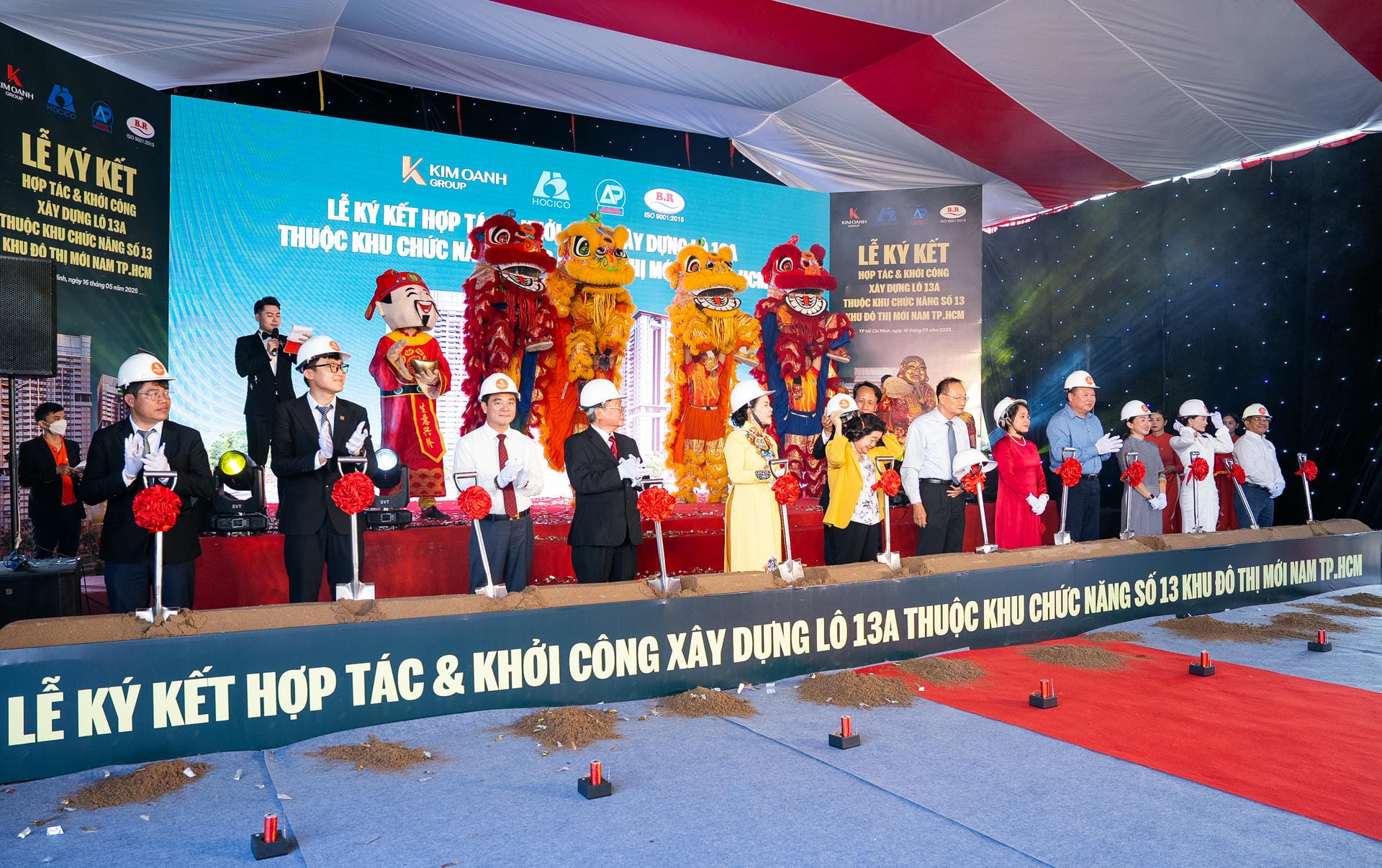 Sáng ngày 16/5/2025, Kim Oanh Group và Công ty cổ phần Xây dựng công trình và Đầu tư địa ốc Hồng Quang đã tổ chức sự kiện Lễ ký kết hợp tác & khởi công xây dựng Lô 13A thuộc khu chức năng số 13 khu đô thị mới Nam TP.HCM.