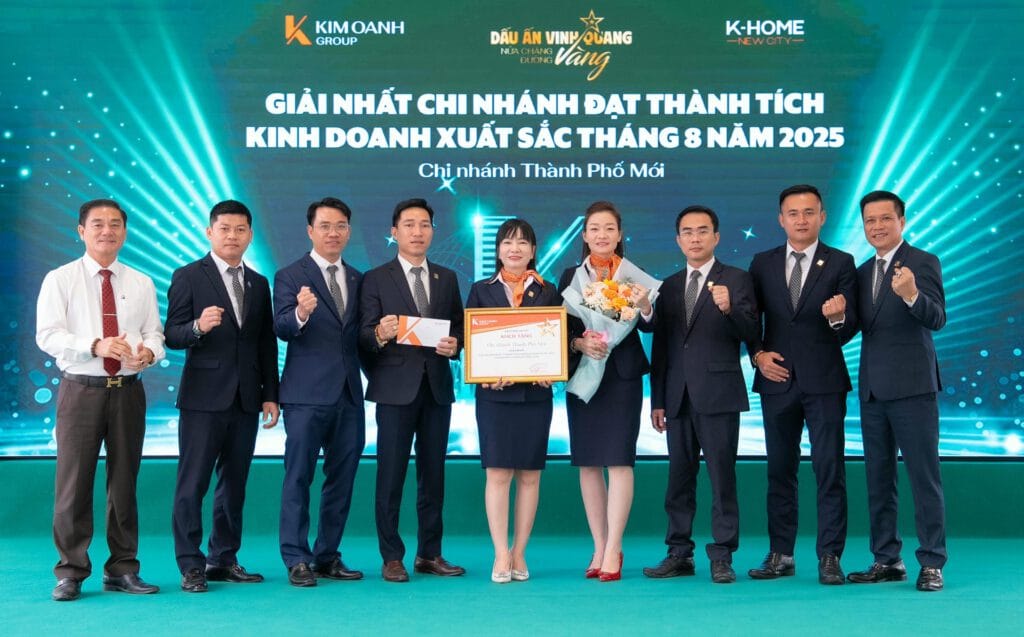 Ngày 29/10/2025, Kim Oanh Group đã long trọng tổ chức Lễ vinh danh Khối Kinh doanh 6 tháng đầu năm 2025 nhằm ghi nhận và tôn vinh những nỗ lực, cống hiến của toàn thể đội ngũ kinh doanh. Trong khuôn khổ sự kiện, các cá nhân và tập thể đạt thành tích xuất sắc trong chiến dịch K-Home New City giai đoạn 2 và các tháng của quý 3-2025 cũng được vinh danh, khen thưởng.
