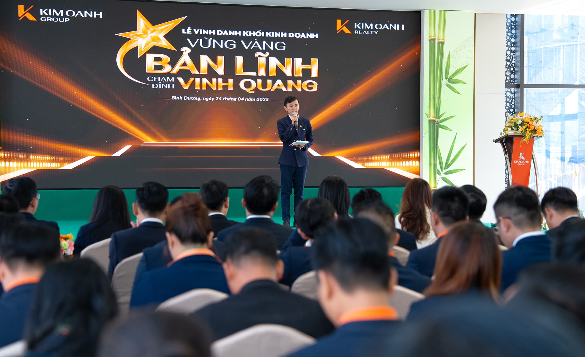 Ngày 24/04/2025, Kim Oanh Group đã long trọng tổ chức Lễ vinh danh Khối Kinh doanh với chủ đề “Vững vàng bản lĩnh – Chạm đỉnh vinh quang”. Đây là hoạt động thường xuyên của Tập đoàn nhằm ghi nhận và khen thưởng các cá nhân, tập thể đạt thành tích xuất sắc trong hoạt động kinh doanh.