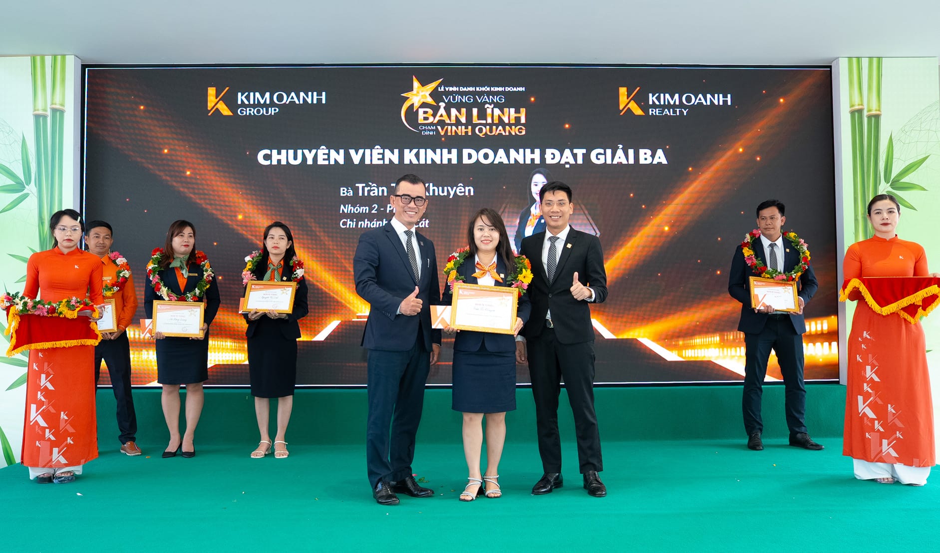 Không chỉ phấn đấu hết mình cho thành tích cá nhân, đội ngũ kinh doanh Kim Oanh Group còn không ngừng nỗ lực đóng góp cho tập thể. Và trên sân khấu Lễ vinh danh, lần lượt các nhóm kinh doanh, phòng kinh doanh đạt thành tích xuất sắc đã tỏa sáng. Đó là phần thưởng cho tinh thần đoàn kết, đồng lòng cùng hướng đến mục tiêu chung.