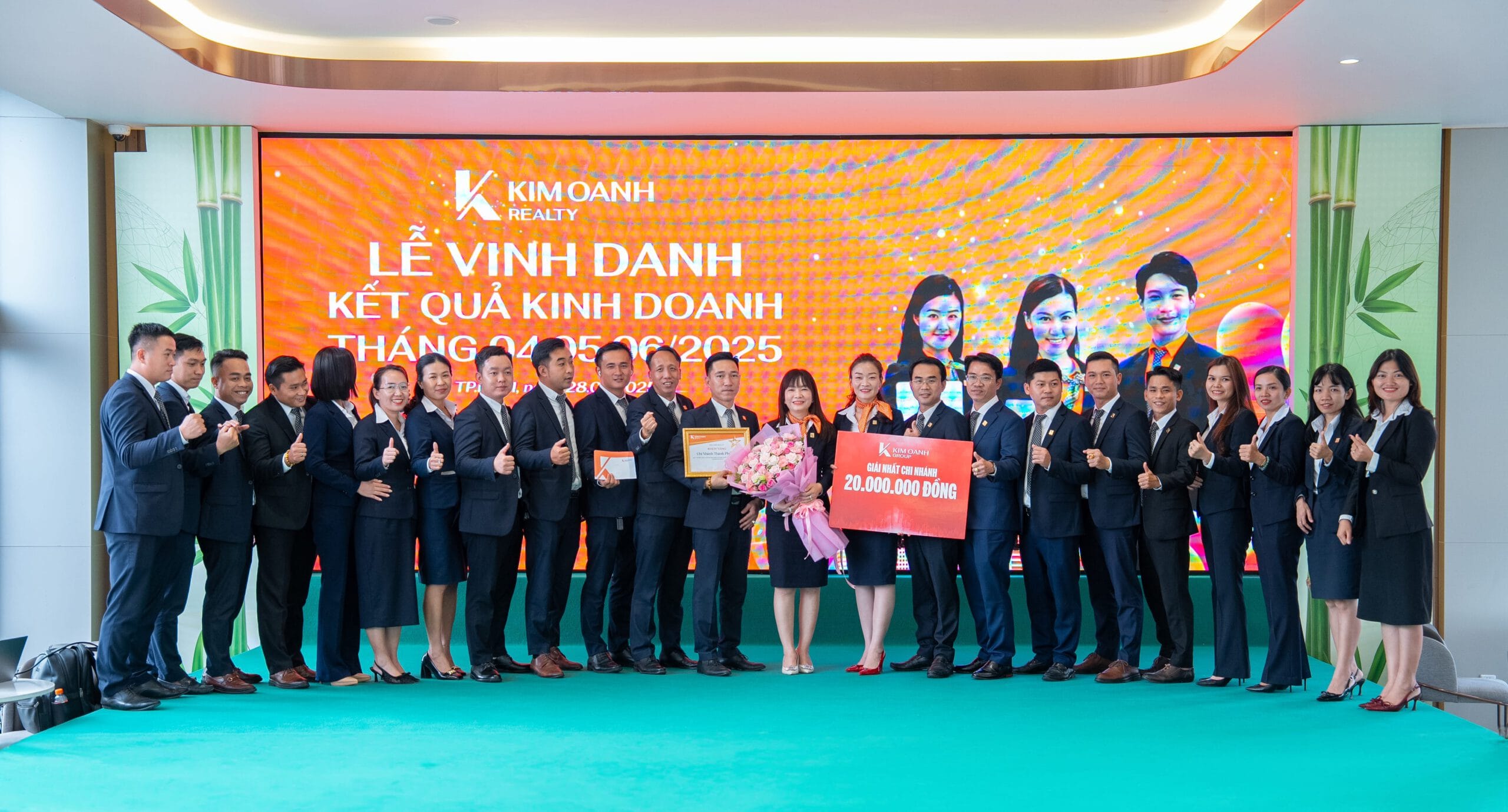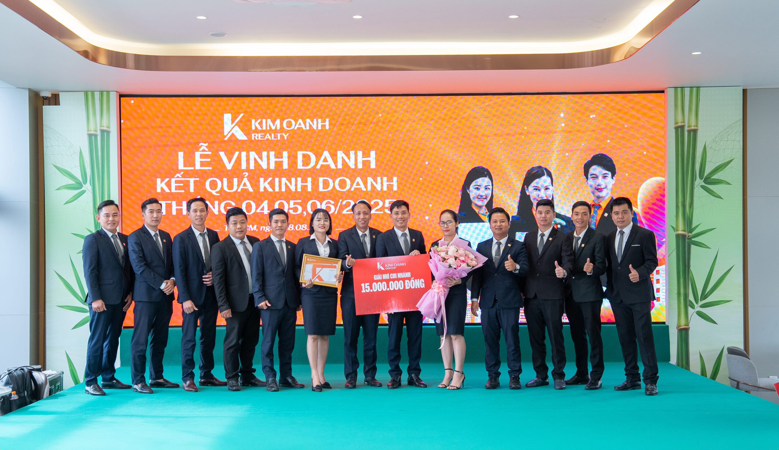 Ngày 28/8/2025, Kim Oanh Group đã tổ chức Lễ vinh danh kết quả kinh doanh tháng 4-5-6/2025. Đây là hoạt động tổng kết hàng quý nhằm ghi nhận và tuyên dương những chi nhánh đạt thành tích xuất sắc, đồng thời tiếp thêm động lực cho toàn hệ thống bước vào giai đoạn mới.