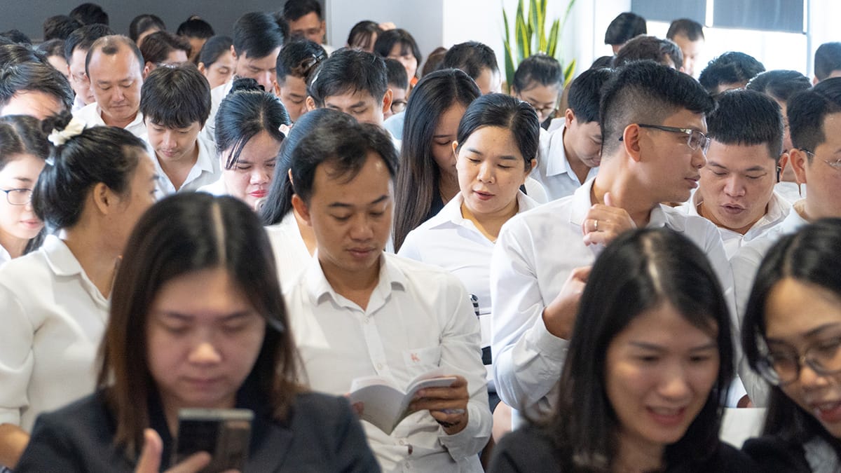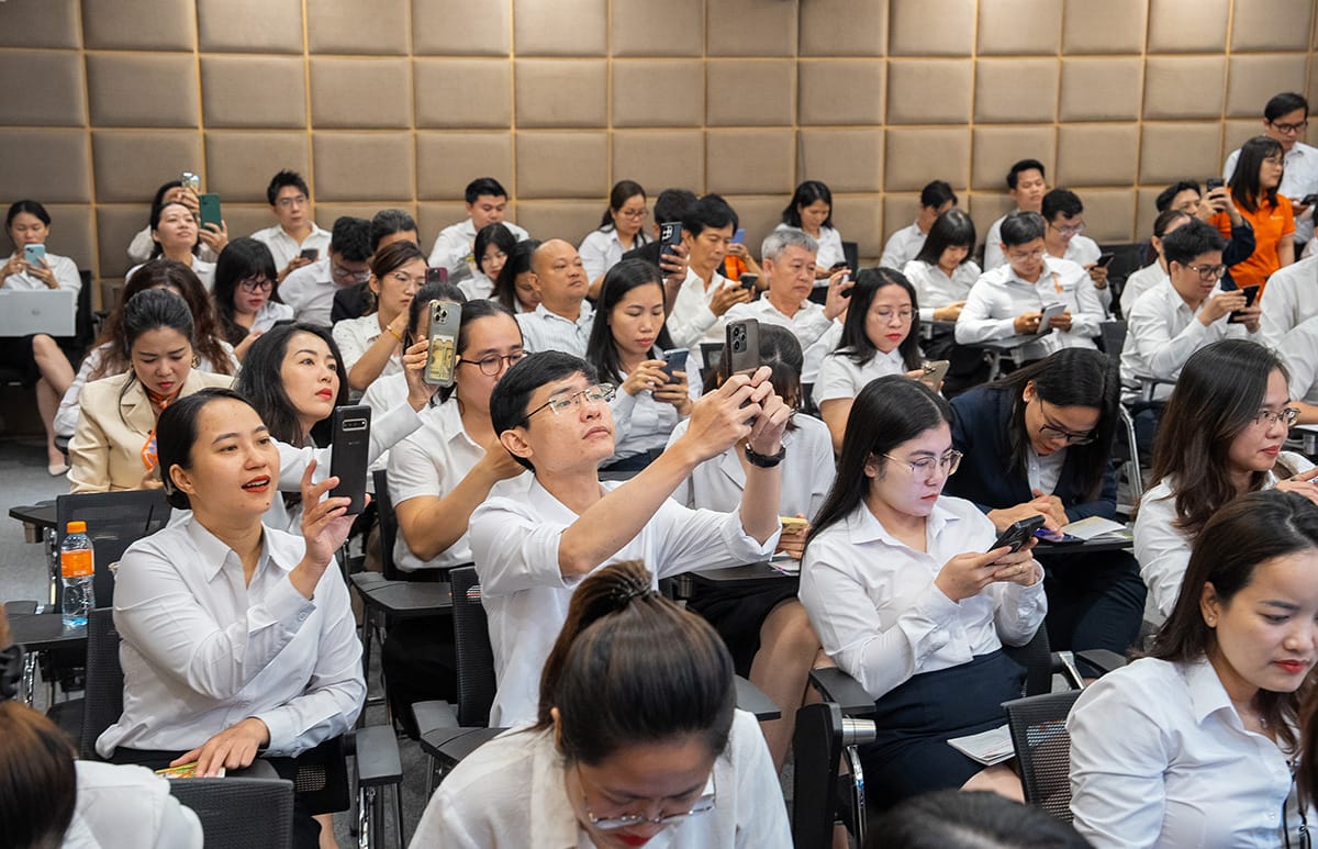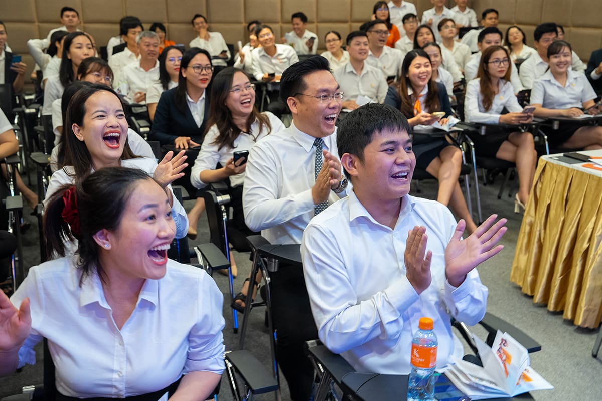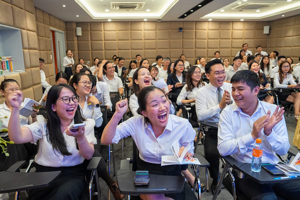 Dù được tổ chức dưới hình thức trực tuyến nhưng không khí tại các điểm cầu kết nối lại sôi động không kém gì một hội trường lớn. Từ Trụ sở đến các chi nhánh, từ các khối văn phòng đến các khối kinh doanh, từ lãnh đạo, các cấp quản lý đến cấp chuyên viên, từ những nhân sự thâm niên dày dặn đến những nhân sự vẫn đang thử việc, tất cả đều rộn ràng tiếng nói cười, sự hồi hộp, háo hức và tinh thần quyết tâm cao độ. Những gương mặt rạng rỡ, ánh mắt chăm chú theo dõi màn hình và những cú click chuột đầy tập trung đã tạo nên một “cuộc đua tri thức” trên hành trình văn hóa doanh nghiệp đầy hào hứng, sôi nổi và gắn kết.