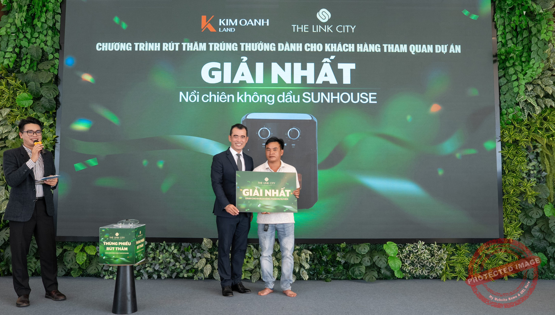 Đại diện Kim Oanh Land cho biết, sự kiện “Khám phá đô thị vệ tinh sân bay Long Thành” là hoạt động mở đầu cho chuỗi sự kiện trải nghiệm dự án sẽ được tổ chức trong thời gian tới, với nhiều hoạt động và quà tặng may mắn hấp dẫn dành cho khách hàng quan tâm The Link City. Trong ảnh, ông Trần Trọng Minh Hoàng – Giám đốc Chi nhánh Võ Nguyên Giáp trao giải Nhất là nồi chiên không dầu Sunhouse đến khách hàng tham dự sự kiện.